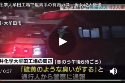2025年7月27日下午6點10分左右,日本福岡縣大牟田市橋口町附近有路人因聞到類似硫磺的異味而報警。經調查,異味源為位于報案地點以東約1公里處的三井化學大牟田工廠(該工廠擁有5萬噸/年TDI裝置)發(fā)生的氯基氣體泄漏事故。