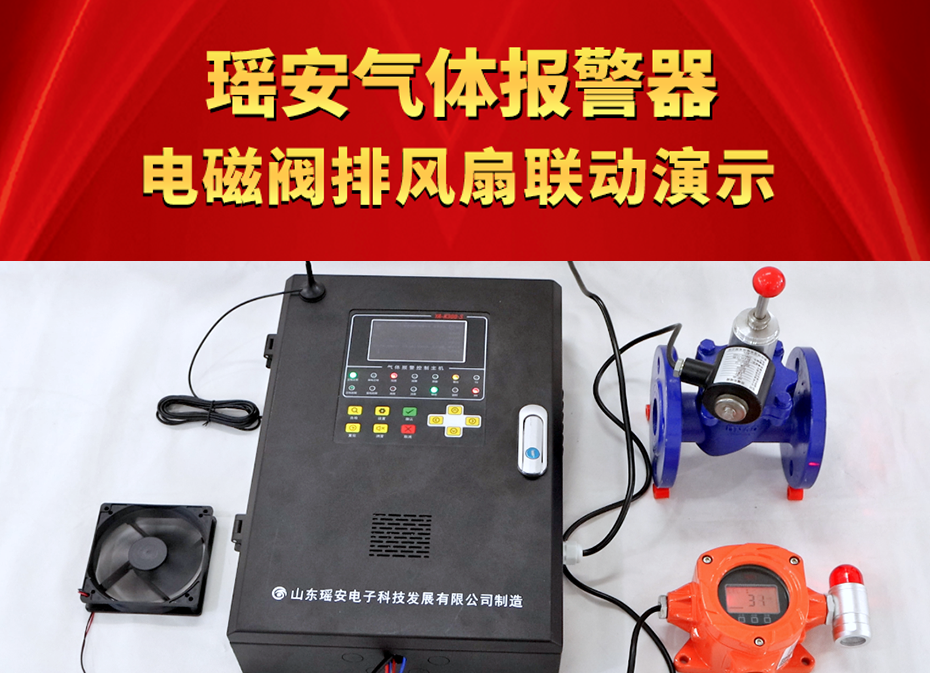 工業(yè)氣體報(bào)警器 電磁閥排風(fēng)扇聯(lián)動(dòng)演示