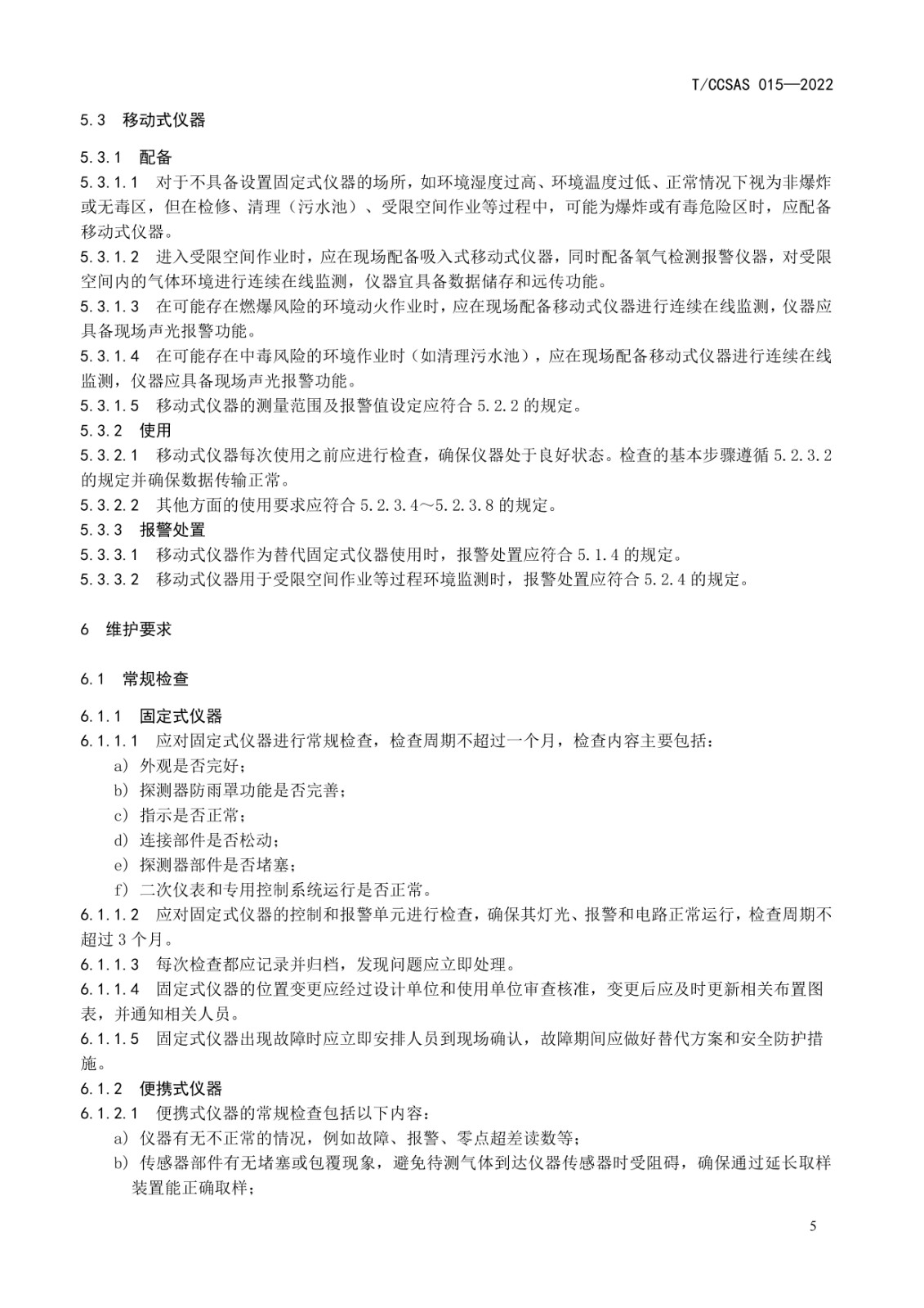 本標準的另一亮點是拓寬了危險氣體檢測報警儀的使用范疇。結合近年來時有發(fā)生的硫化氫中毒、氮氣窒息等安全事故,本標準給出了諸如惰性氣體(氣瓶)儲存、污水池清理作業(yè)等可能存在有毒有害氣體“無序釋放”環(huán)境中檢測儀器的使用方法。如正常情況下視為非爆炸或無毒區(qū),但在檢修、清理(污水池)、受限空間作業(yè)等過程中,可能轉變?yōu)槿急蛴卸疚kU區(qū)域時,應配備移動式儀器;在可能存在中毒窒息風險的環(huán)境作業(yè)時(如清理脫硫塔、污水池、地下管網(wǎng)),應在現(xiàn)場配備移動式或便攜式儀器,進行連續(xù)檢測,儀器應具備現(xiàn)場聲光報警功能。