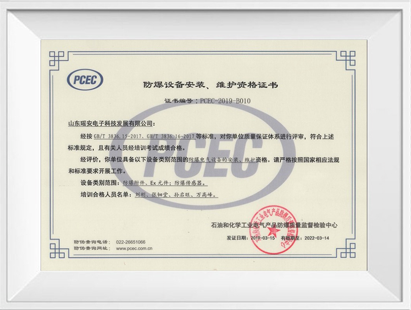 制造計量器具許可證和防爆設(shè)備安裝、維護(hù)資格證,這兩個認(rèn)證決定了該廠家是否可以生產(chǎn)制造或維修安裝相關(guān)的氣體檢測產(chǎn)品。