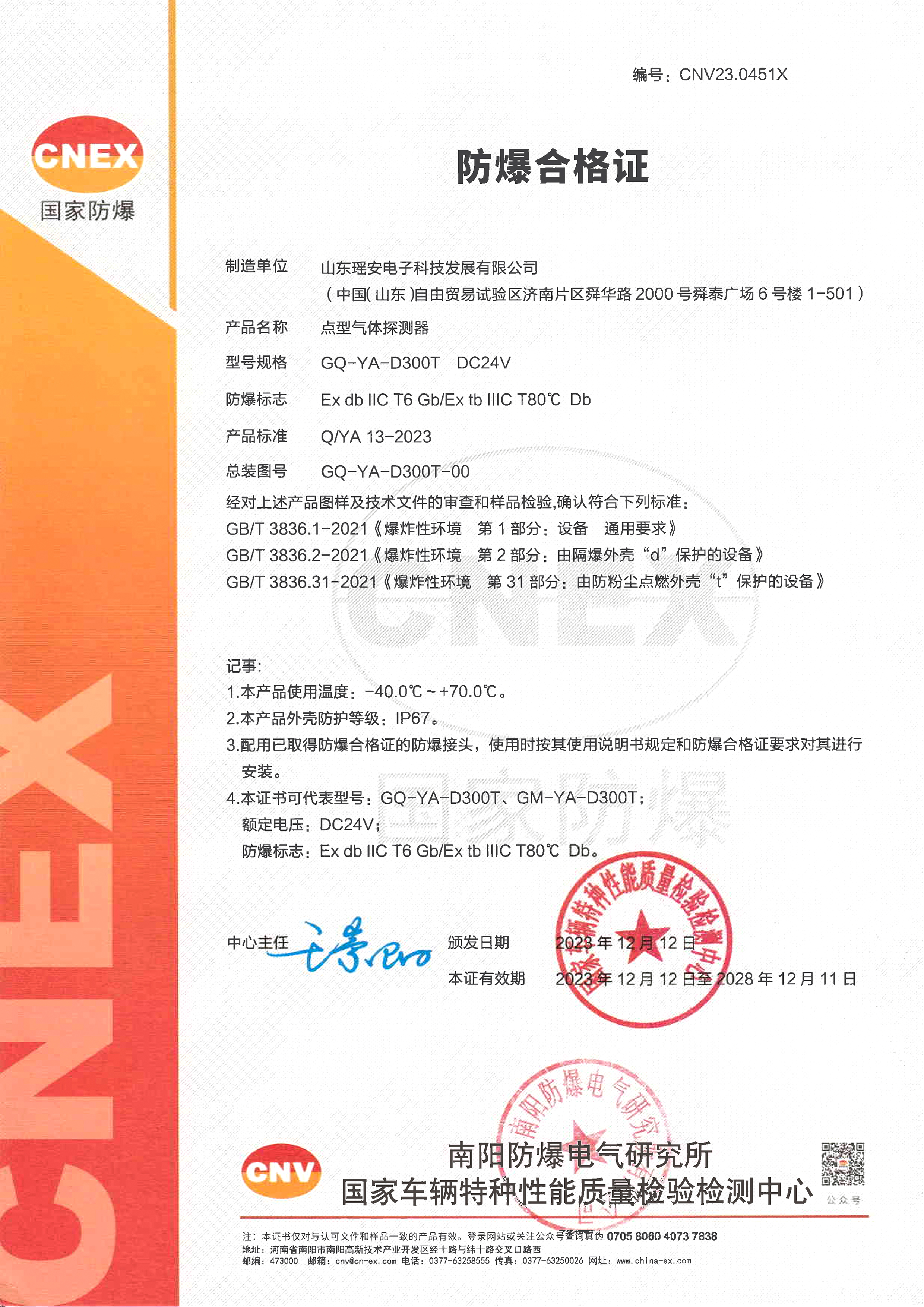 GT-YA-D110F防爆合格證