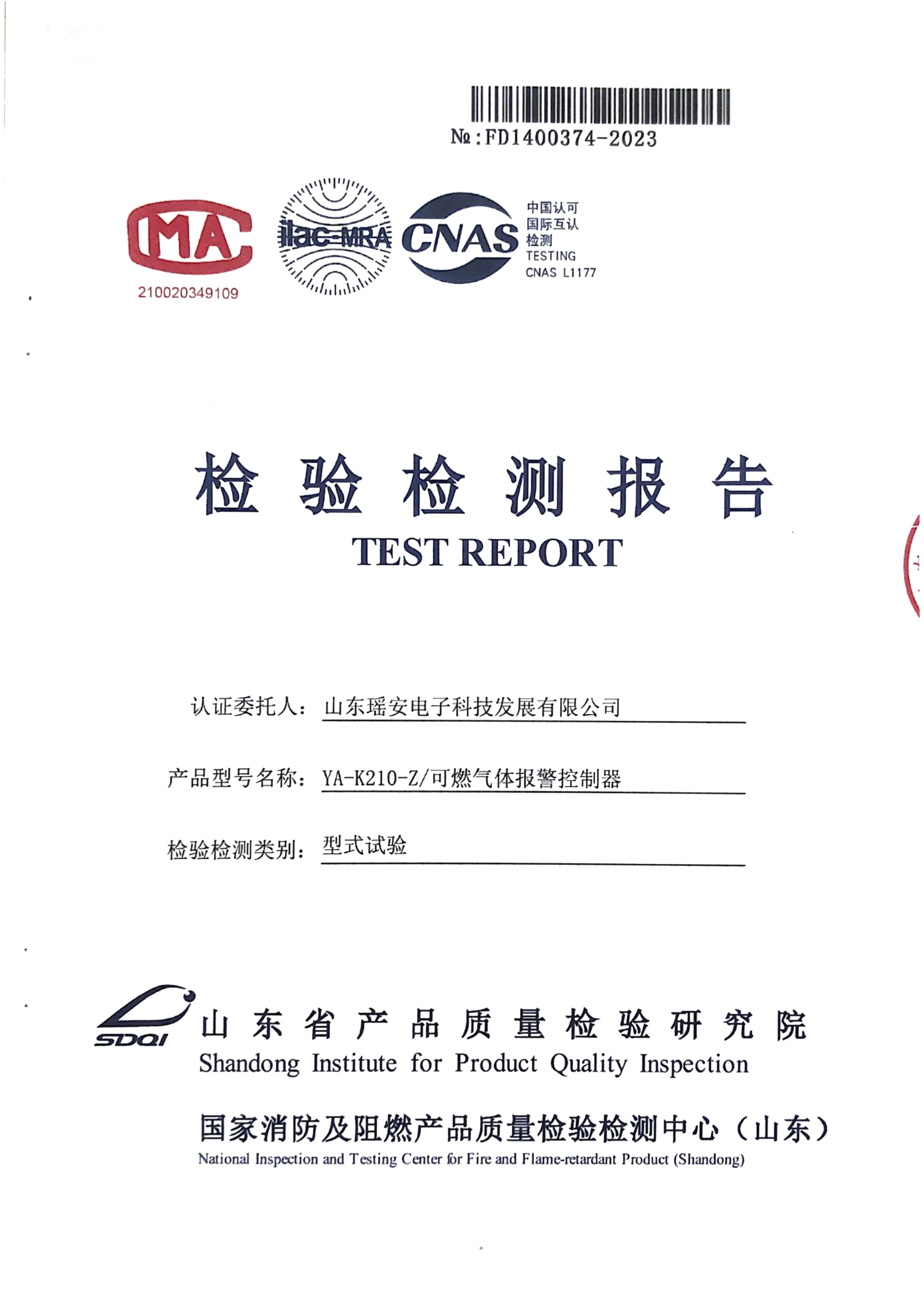 瑤安氣體報(bào)警控制器YA-K210總線消防檢驗(yàn)報(bào)告