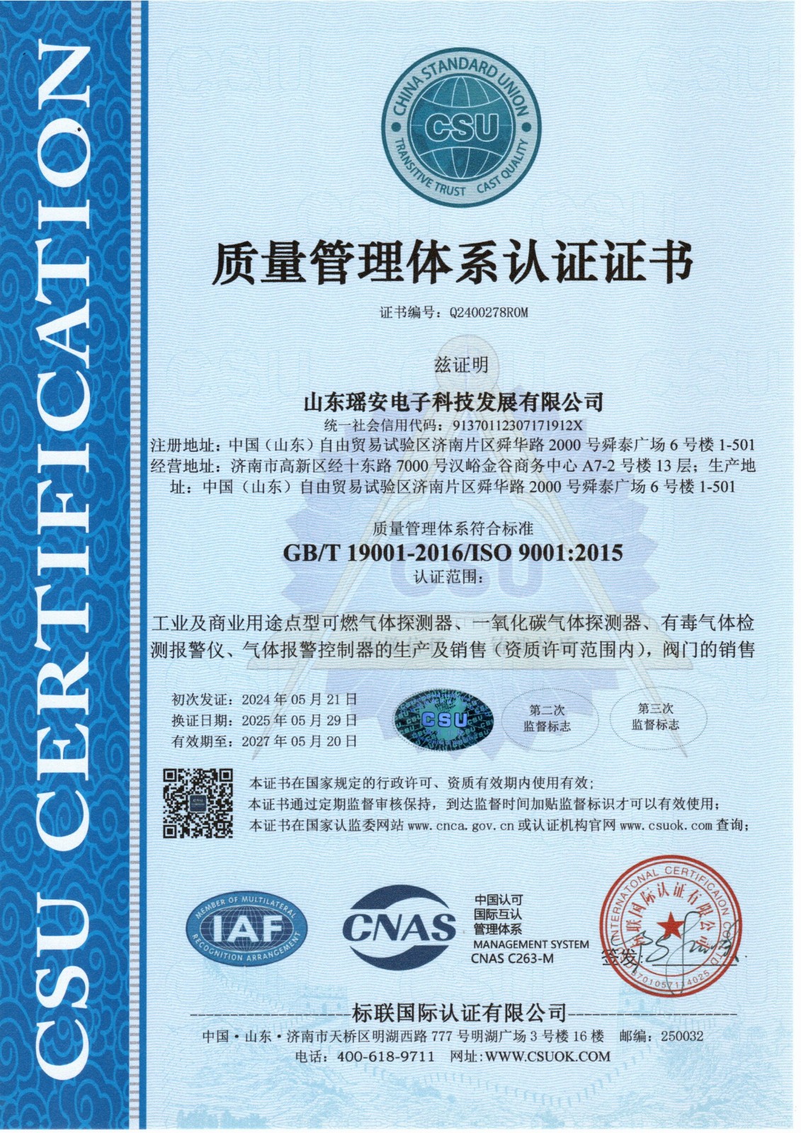 質(zhì)量管理體系認(rèn)證證書