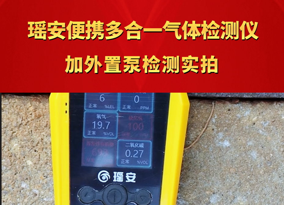 瑤安便攜氣體檢測儀加外置泵檢測實拍